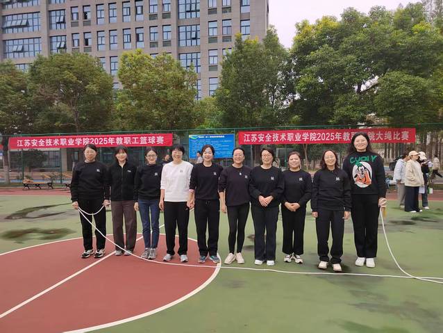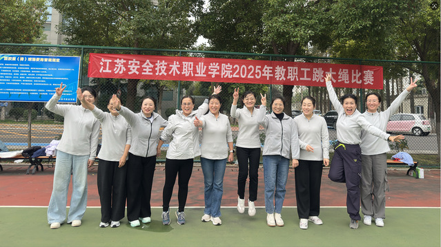 为丰富教职工精神文化生活,展现女教职工昂扬向上的精神风貌,11月7日下午,江苏安全技术职业学院第五届教职工文化艺术节系列活动之一——女教职工跳大绳比赛,在云龙校区篮球场火热开赛。本次比赛吸引了来自全校各分工会的7支代表队同场竞技,现场气氛热烈,欢声笑语不断。