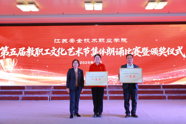朗诵比赛现场气氛热烈,来自全校各分工会的10支代表队依次登台。选手们身着整齐服装,以饱满的精神状态、精湛的语言艺术,将红色情怀与育人初心融入每一段篇章。网络信息安全学院分工会的《我的南方和北方》意境悠远;商贸与人文学院(基础课教学部)分工会的《诗颂风华》昂扬向上;机关一分工会的《这盛世如您所愿》、机关二分工会《大写的中国》满含深情;智能制造与应急装备学院分工会两支队伍的《成为那道明亮的光》《盛世耀中华》尽显奋进姿态;马克思主义学院分工会的《祖国颂》饱含爱国深情;汽车与交通安全学院分工会的《不屈的容颜—从烽火讲台到育人新时代》深情回顾了光辉历程;后勤服务中心分工会、继续教育学院分工会联合队的《读中国》深情诉说对祖国母亲的热爱。工业安全与职业健康学院分工会以真挚的情感、有力的表达演绎《薪火长河:从信仰之源到育人之光》,将比赛推向高潮。最终,工业安全与职业健康学院代表队与马克思主义学院代表队凭借深刻的主题诠释、默契的团队配合斩获一等奖。