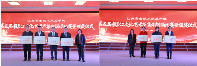 12月19日,学校第五届教职工文化艺术节教职工集体朗诵比赛暨颁奖仪式在云龙校区圆满落幕。校长李桂萍、副校长任国兴、纪委书记朱伟军等在校党政领导与全体教职工欢聚一堂,共赴这场艺术魅力的文化盛宴。
